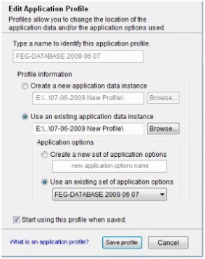 Profile allow you to change the location of the application data and/or the application otions used. |