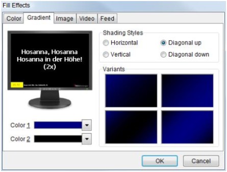 Wenn sie einen der eingeblendeten Hintergründe wählen so wird diesem Lied dieser Hintergrund zugeordnet. Sie müssen dann jedesmal wenn Sie das Lied in Zukunft präsentieren, diesen Hintergrund anschauen oder ändern.